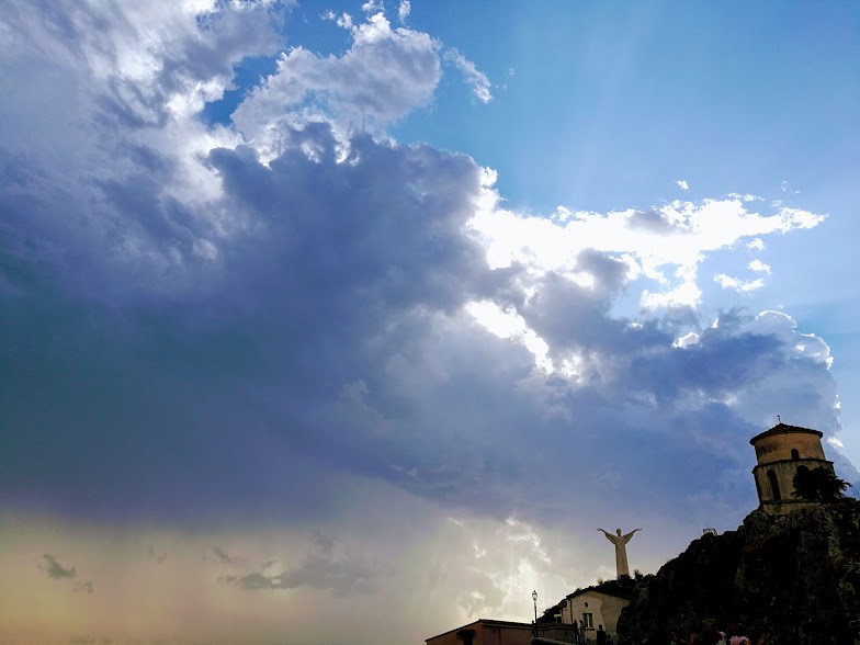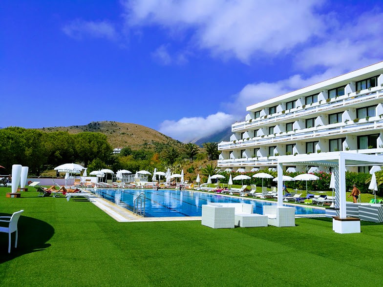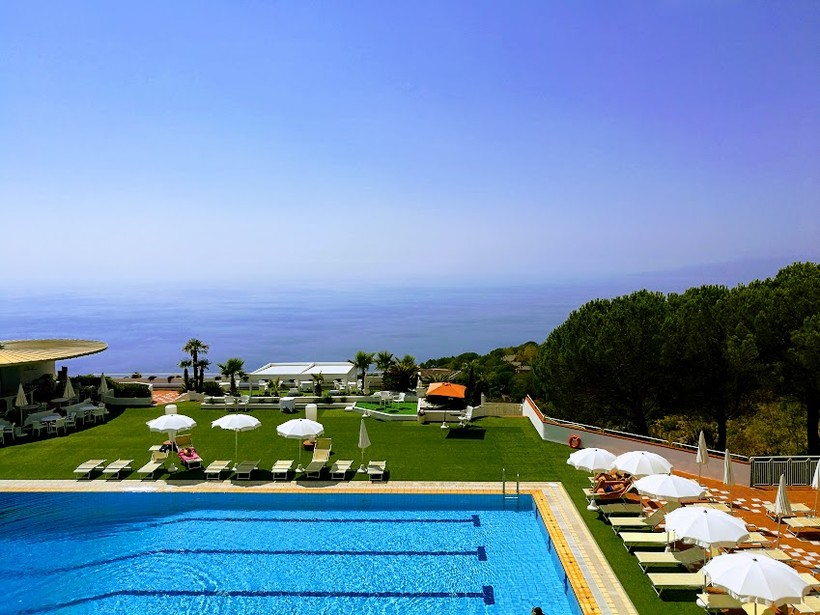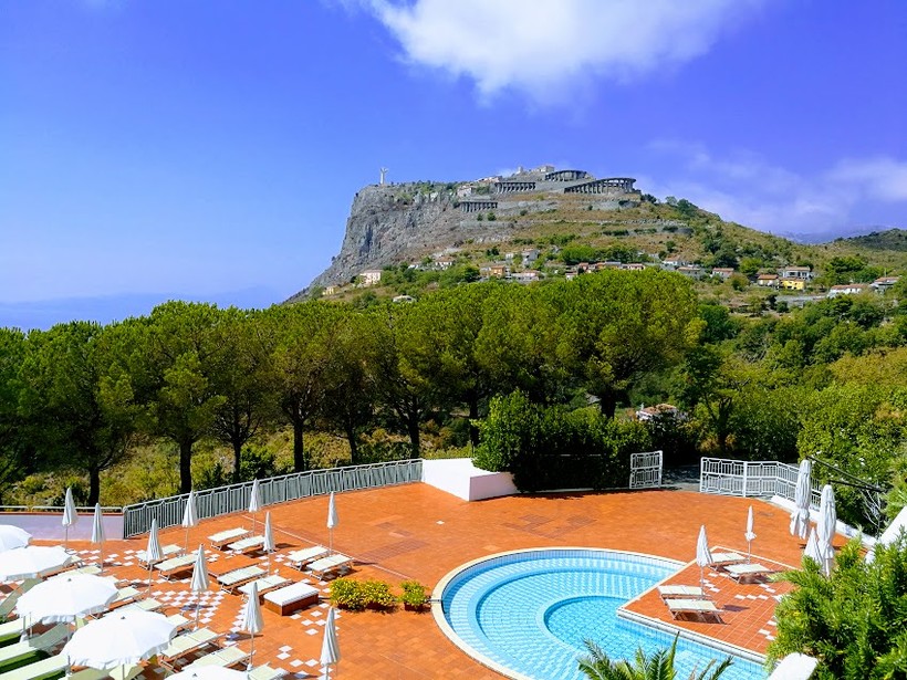 Недалеко от горы Сан-Бьяджо находятся отели и рестораны. Я жила в отеле Grand Resort Hotel Pianetamaratea. Такого шикарного вида с балкона у меня никогда не было: статуя Христа на горе, море и бассейн. Отель уютный, но цена номера за ночь на двоих человек около 120 евро. Можно подобрать отель с более низкой ценой и ближе к морю.