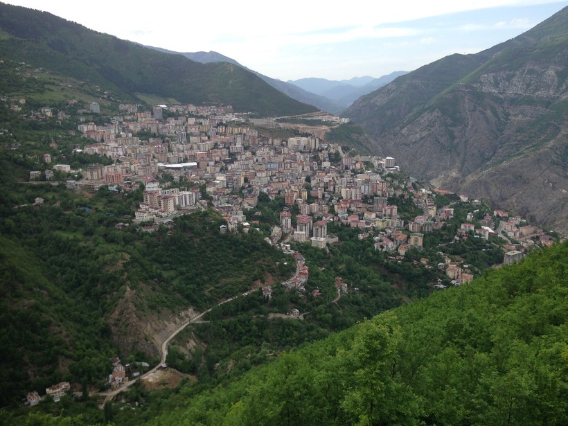 Первый город в который мы заехали, не считая многообразных деревенек - Артвин. Недалеко от него располагается грузинская граница и город Батуми. Собственно, из Артвина всего за 80 турецких лир можно доехать на комфортабельном автобусе до черноморских берегов Грузии. Город очень необычный - он не имеет центра как такового. Его улицы и дома расположены в прямом смысле на склоне горы. Было очень интересно парковаться на заправке и буквально выкатываться из машины.