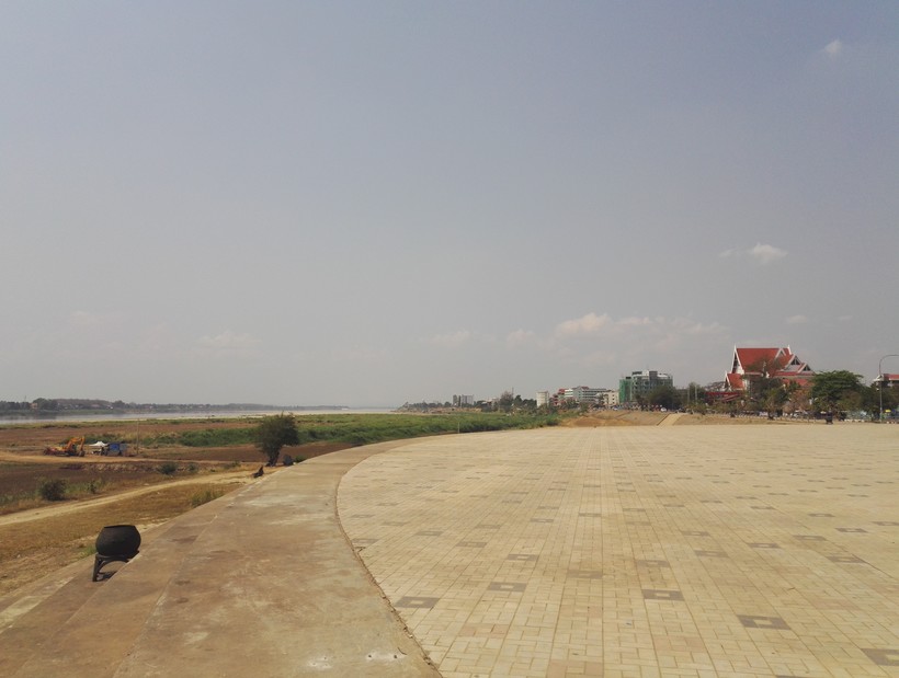 Позже вышли на набережную у реки Меконг. Она очень длинная, но ужасно скучная днем. Вид реки напомнил пейзажи Волго-Ахтубинской поймы, рядом с Волгоградом. Купаться мы не рискнули: вода выглядит мутной и неизвестно что за живность там водится. Хотя, опять же, река вызывает в памяти ассоциации с некоторыми реками юга России и кажется безопасной.