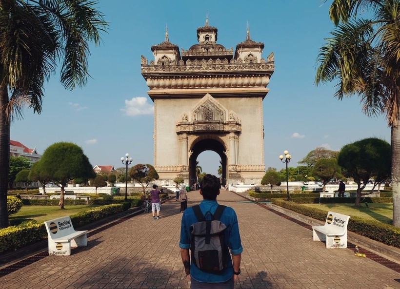 В первый день мы арендовали велосипеды и отправились к главной достопримечательности Вьентьяна — триумфальной арке. Она очень похожа на ту, что в Париже, но построена в честь воинов, которые освобождали Лаос от колониального режима Франции.