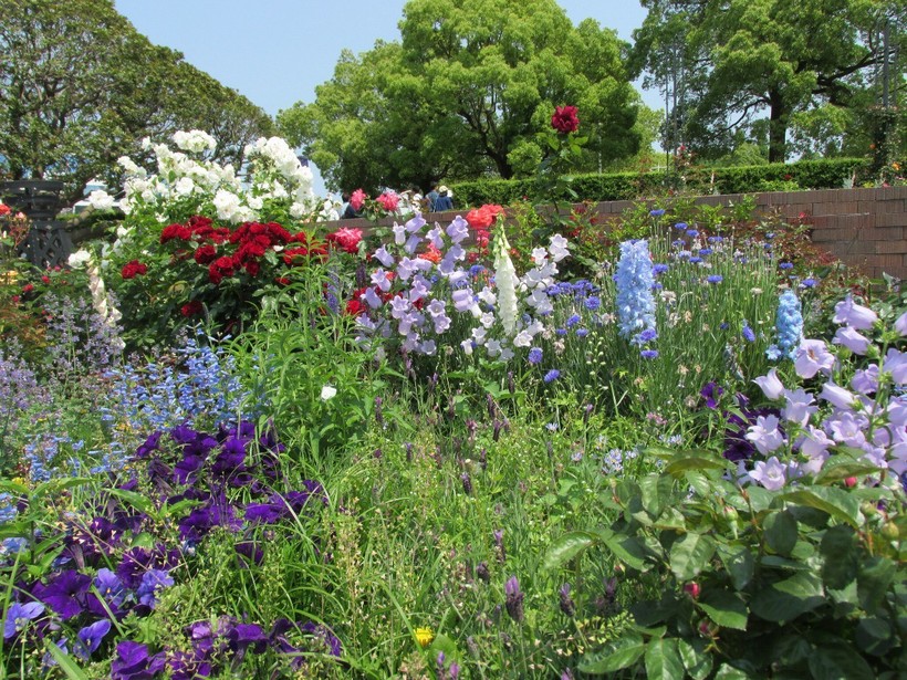 После осмотра достопримечательностей с высоты птичьего полета, мы отправились гулять вдоль набережной по невероятно красивому парку Ямасита. Столько цветов и красок я не видела ни разу в жизнь, клумбы были похожи на настоящие произведения искусства, несмотря на то, что все росло абсолютно естественно, без каких-либо намеков на геометрические узоры.