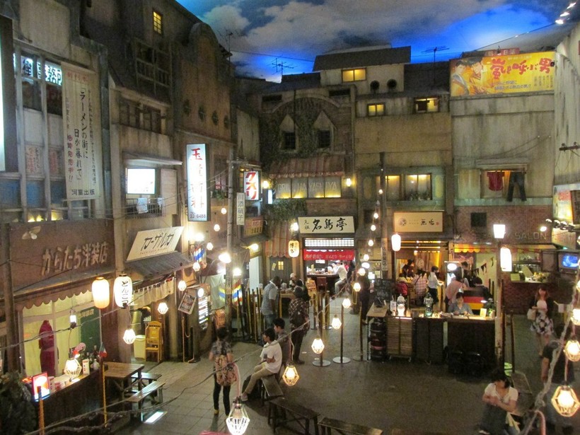 Вот это реально стоило увидеть или даже скорее почувствовать. На подземном этаже музея рамэна воссоздан целый квартал с крошечными ресторанчиками, каждый из которых готовит свой собственный рамэн по уникальному рецепту. По сути это историческая реконструкция, отсылка к послевоенным годам, здесь всегда царит вечерний сумрак, потому что эти небольшие заведения оживали именно в это время, когда простые японцы спешили плотно поесть после долгого рабочего дня.