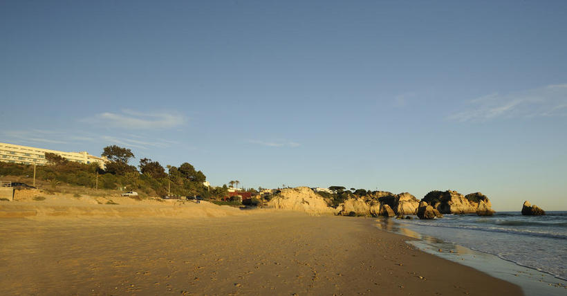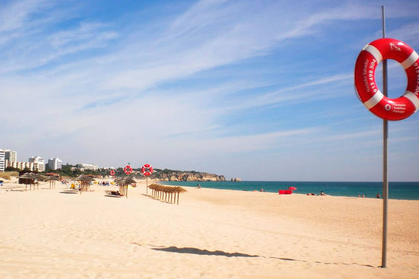 - Очень длинный и широкий пляж с практически незастроенной территорией. Здесь можно в одиночестве валяться на берегу, загорать и купаться, а можно уйти гулять вдоль пляжа — пойдешь налево, придешь к «фирменным» желтым скалам Алгарве, пойдешь направо — уйдешь практически в Лагуш (только стоит учитывать, что по берегу пройти в соседний город нельзя, так как там протекает речушка).
