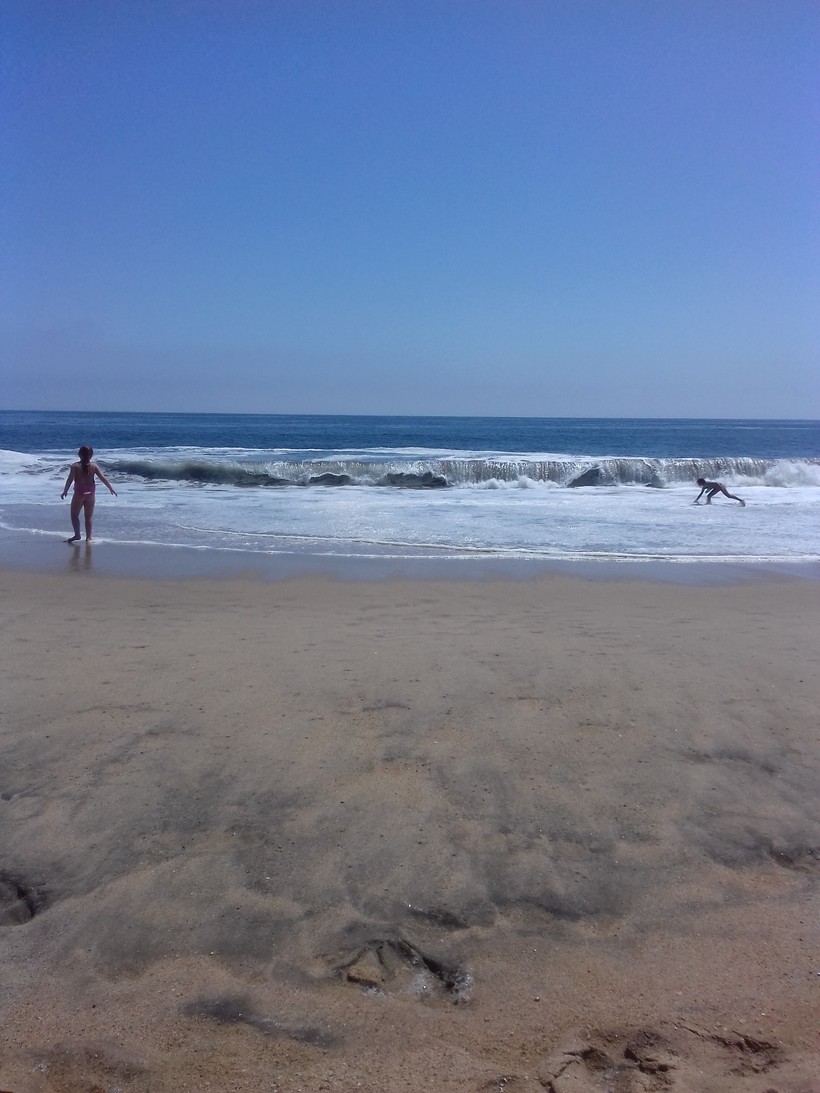 Дело в том, что рядом с эти пляжем находится мощное холодное течение "Гумбольдта", есть опасность уплыть вместе с течением далеко за горизонт. Местные спасатели не дремлют и никого не пускают в воду. Это не вся беда течения, из-за него вода в океане критически холодная и летом прогревается лишь до +17...+20.