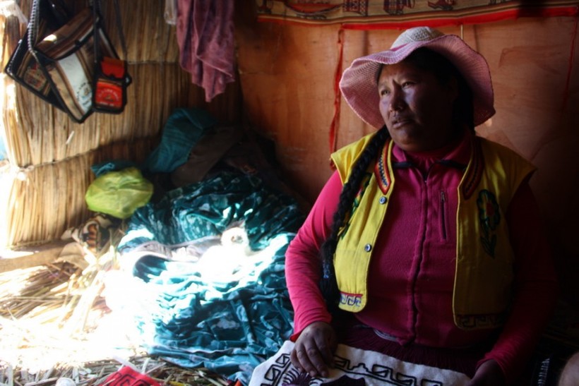 После этой затяжной рекламы он, наконец, объявляет, что женщины острова готовы показать нам дом. Индианка проводит нас в хижину, но, вместо того, чтобы начать экскурсию, начинает раскладывать перед нами наволочки «ручной работы», явно купленные на рынке в Пуно. После этого она называет цену в 2 раза выше, чем где-либо в Перу, и говорит: