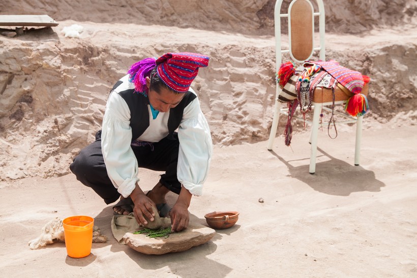 Кстати, Перу – родина картофеля. Здесь выращивают не менее 3000 видов, а продовольственный рынок в Пуно кажется натуральной картофельной выставкой. Помимо привычных нам корнеплодов, тут продается чуньо – картофель, специально подготовленный к длительному хранению. Традиция приготовления чуньо уходит своими корнями в далекое доиспанское прошлое. Картошка днем сушится под горячими лучами горного солнца, а ночью вымораживается при минусовых температурах. В таком виде она может храниться годами.