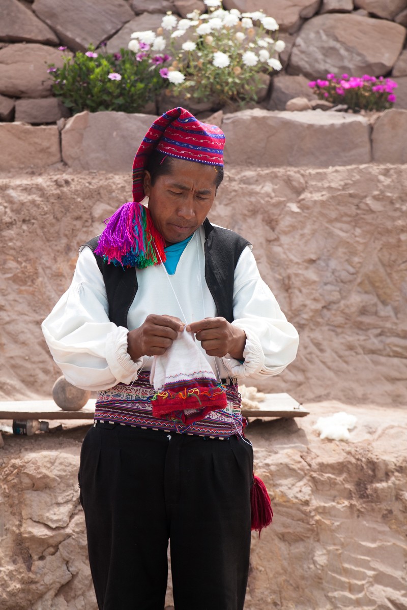 Минусы города: Город находится на высоте примерно 4 тыс метров над уровнем моря, я - житель тихоокеанского побережья и совершенно не адаптирована к такой высоте, если в Пуно и было что-то хорошее, мне оказалось не по зубам, сердцу и легким, спасение - озеро Титикака, которое находится чуть все же пониже самого города - 3,8 тыс м над уровнем моря, у берегов его скучены якобы плавучие поселения местных, ощущение однако, что к часам 7 утра все туда подтягиваются, как на работу, и жилища и орудия хозяйства какие-то бутофорские, другое дело остров Такиле, до него мы шли хорошим ходом более получаса, озеро Титикака очень большое, думаю порядка 180х70 км (длина и ширина), чистая пресная вода и большая глубина создают идеальные условия для рыболовства, вот на Такиле нет никакой бутафории, а люди действительно живут в естественной среде без электричества и машин, нас приветливо встретили и очень вкусно накормили, показали свои народные промыслы, женщины стригут овец и прядут шерсть из которой мужчины вяжут всю одежду, за неумеющего вязать никто не идет замуж, шерсть стирают при помощи травы, мне показалось название ее "чуха", просто срывают с кустарника, растирают в тазике с водой и белоснежная пена наполняет таз, шерсть становится чистейшей и беленькой.