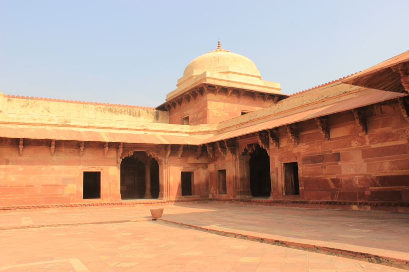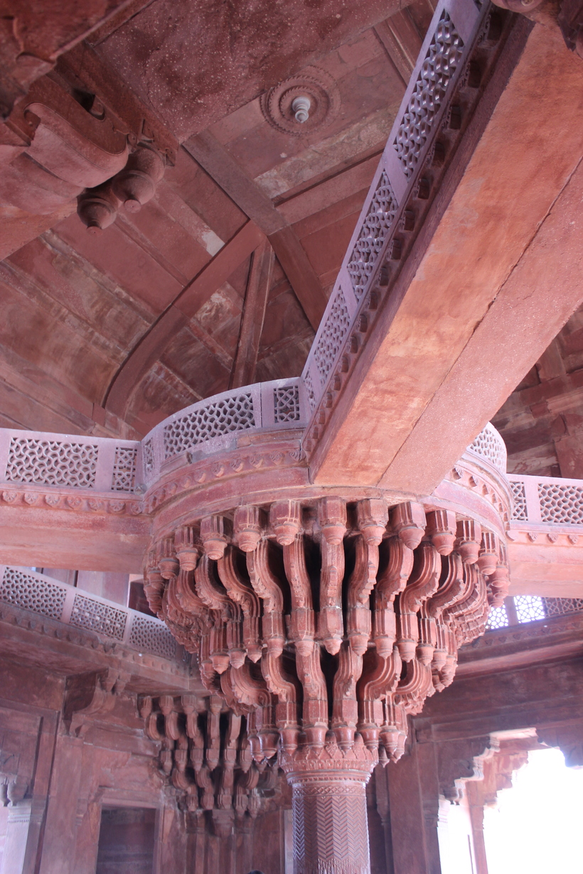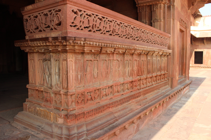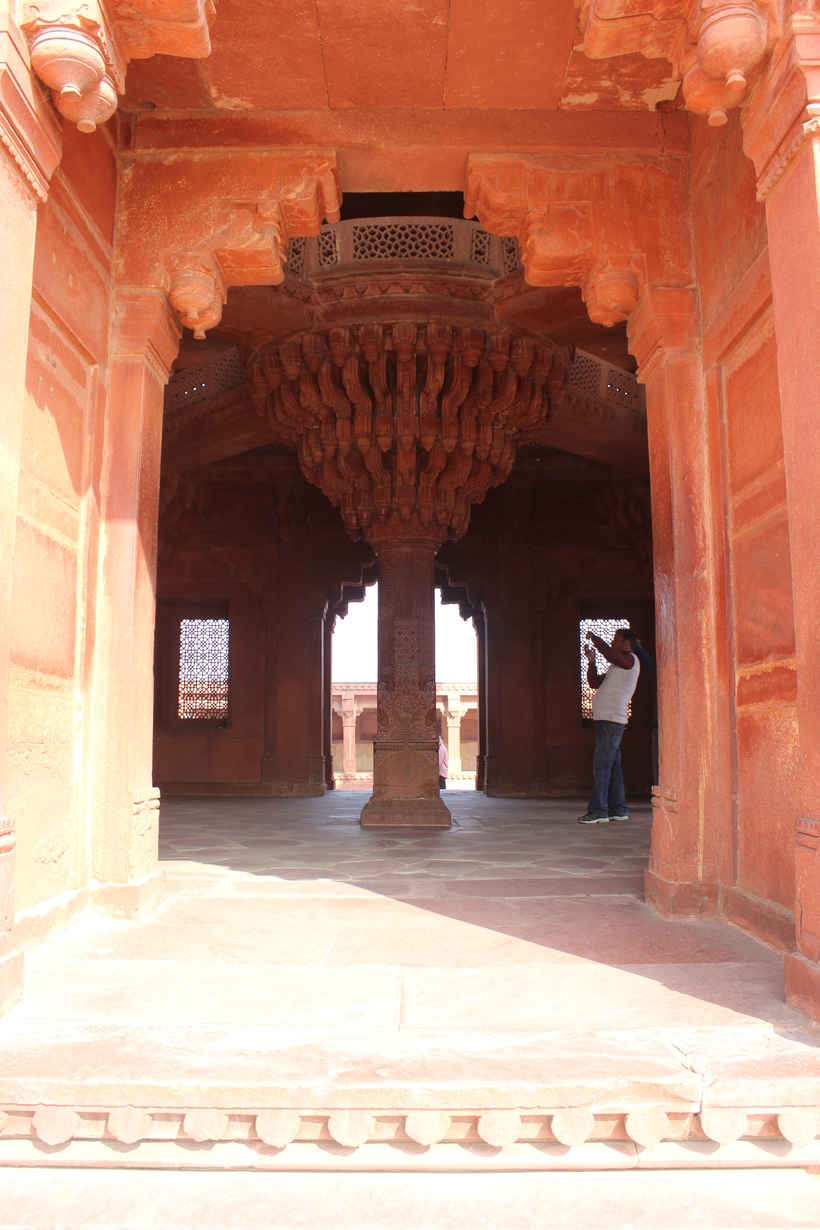 Уже в те года город начал обрастать тайнами и секретами, возможно именно они спасли его от разрушения, ведь практически все здания сохранились в своем изначальном облике. Годом основания считается 1565-й, тогда же Акбар решил перенести сюда столицу и совсем не безосновательно. Его глобальной мечтой был мир во всем мире, поэтому он решил придумать новую религию, объединяющую все конфессии. Для увековечения единства он приказал создать Диван-и-Кхас или Дворец Аудиенций с вкраплениями резных изваяний, стиль которых должен был соответствовать каждой имеющейся религии на нашей планете в 16 веке. Присмотритесь к главной колонне внутри здания, это действительно восхищает.