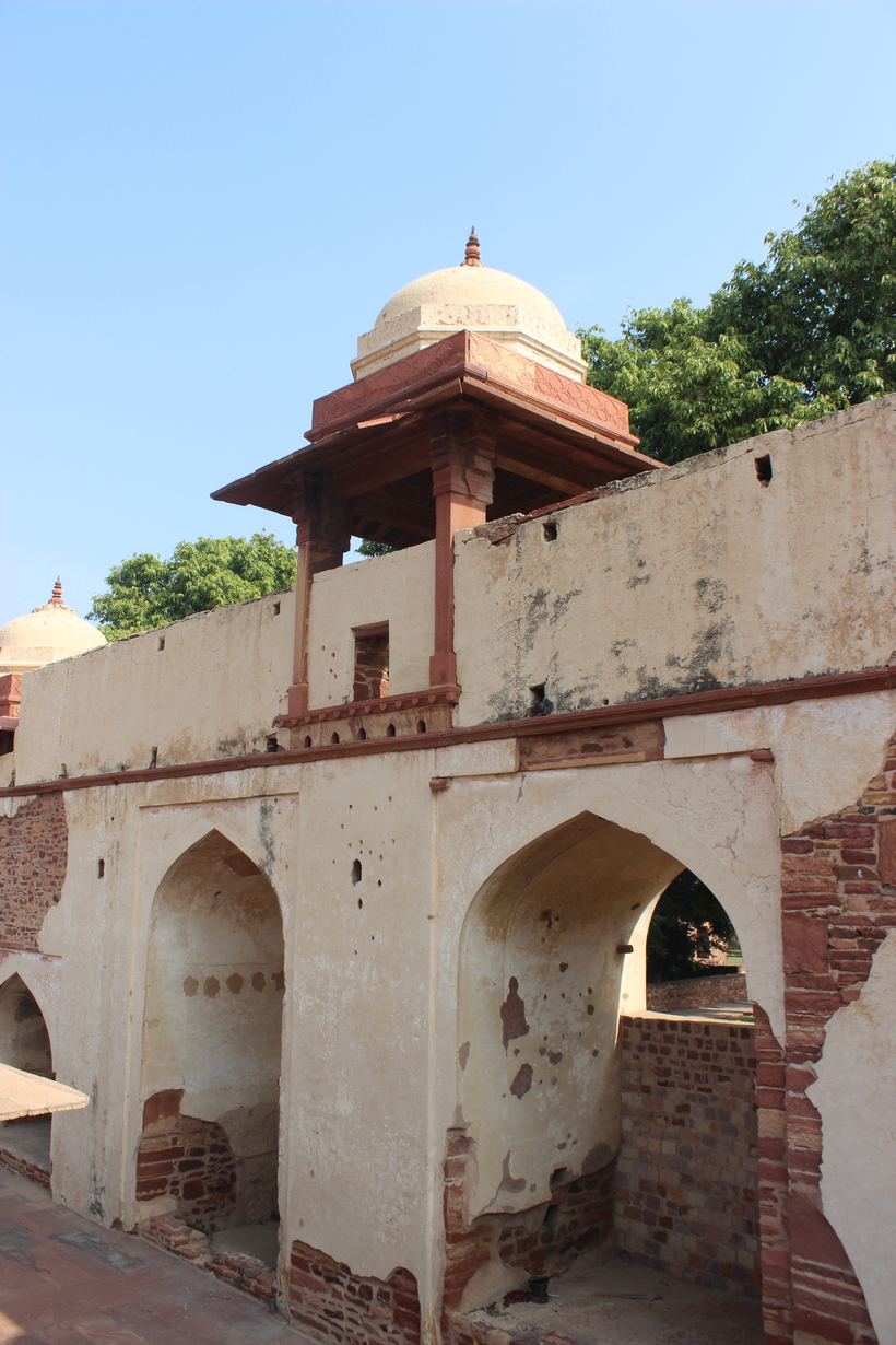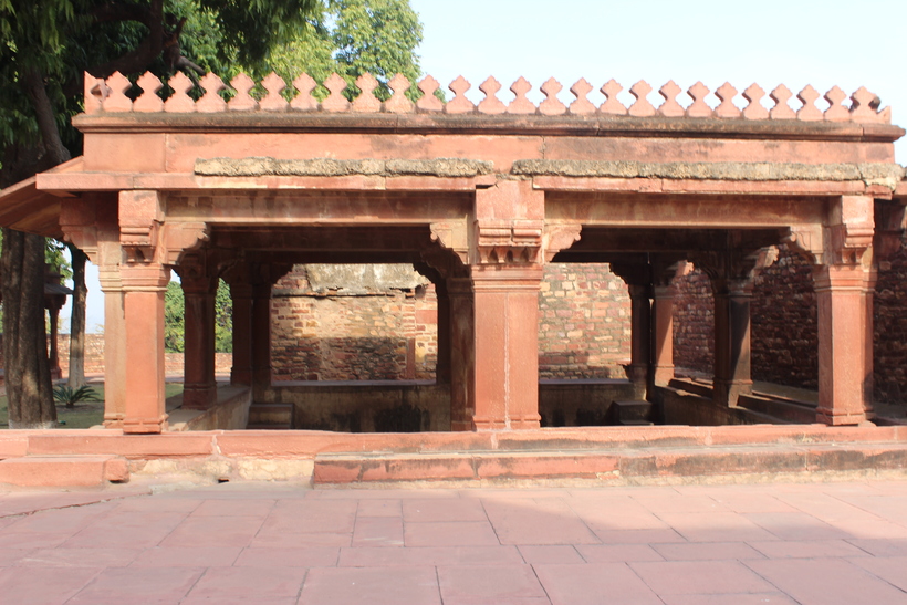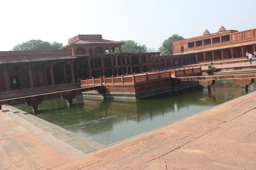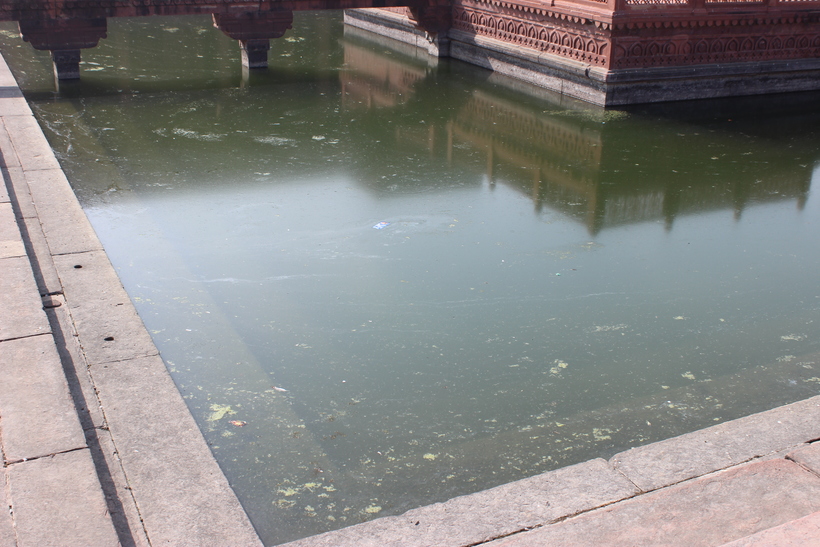 Между пяти ярусным дворцом и домиком турецкой жены имеется небольшой искусственный бассейн, с островком посередине. Так, по одной из легенд сам Акбар принимал там охлаждающие ванны в летний период. А согласно историческим летописям, после создания бассейна, султан приказал раскидать по дну золотые монеты в честь своих подданных. В общем, это была такой жест щедрости с его стороны. Только не совсем ясно, собирали ли они потом эти монеты по своим карманам, ныряя за ними или просто разбогатели, считая данный поступок священным. Сейчас вода грязная и темная, и скорей всего дождевая, разглядеть дно к сожалению не возможно, а то тоже что-нибудь обнаружила бы.