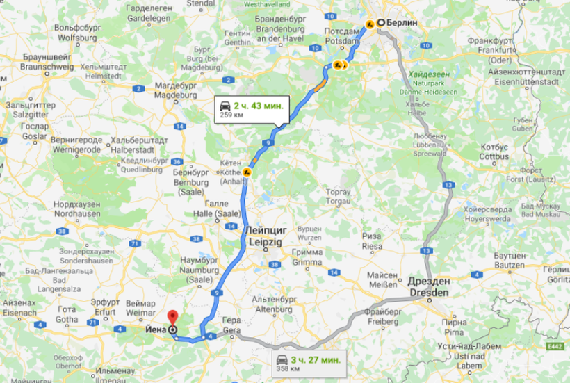 Прямых поездов из Берлина в Йену, как оказалось, нет. Но можно доехать с пересадкой в городе Галле.
