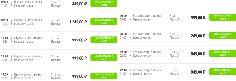 Отправляются автобусы в Йену с центрального автовокзала Берлина (Masurenallee 4-6) в: