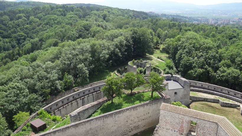- Замок Тренчьянский град. Собственно, именно он и стал главной причиной, по которой я остановился в этом городе. Вообще сейчас замки Словакии кажутся мне на много порядков круче аналогичных построек в Чехии, Германии и Польше, а сравнивать их между собой — занятие и вовсе неблагодарное. Понятно, что Спишский град — это вообще космос, а про остальные словацкие цитадели могу сказать, что каждая крута по-своему. Что касается замка в Тренчине, то это многоярусная крепость, стоящая на крутом холме. Ее доминантой является высокая сторожевая башня, на которую я, конечно же, поднимался. При этом замок очень неплохо отреставрирован, то есть перед нами не руины. При этом главное, что есть в крепости — это сама крепость: виды на нее, дворы, смотровые площадки. Кстати, на одном из нижних ярусов, где установлена сцена и деревянные скамейки (очевидно, для проведения массовых мероприятий), фоном играла европейская фолк-музыка, а в одной из мелодий я узнал знаменитую «Три ворона». Экспозиция в крепости тоже есть, но, на мой взгляд, она абсолютно вторична. Во многом по этой причине я взял за 5 евро самый дешевый билет, предполагающий самостоятельный осмотр крепости и части выставок. Более дорогой вариант стоил, по-моему, всего на 1 евро дешевле, но пришлось бы ходить с экскурсией на словацком, а такой опыт я уже имел в Оравском замке.