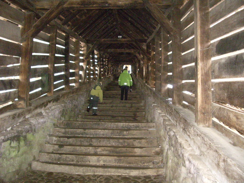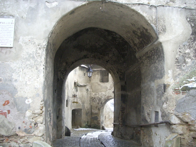 Подняться на Школьный холм по «Лестнице учеников» - деревянная мрачная галерея над лестницей, ведущей к церкви на холме. По ней действительно многие столетия школьники ходят в школу, расположенную прямо у выхода из мрачной лестницы. Несмотря на мрачный вид, эта галерея имеет одно, но очень функциональное предназначение – дети не должны мокнуть под дождем, преодолевая более сотни ступеней вверх. А то, из чего сделаны своды – второстепенно. Зато на фоне исторических подробностей Сигишоары, связанных с «кровавым» Дракулой, эта постройка смотрится весьма уместно. На подходе к лестнице продают сувениры, есть симпатичные кафе, на выходе из лестницы – на самом верху часто играют уличные музыканты.