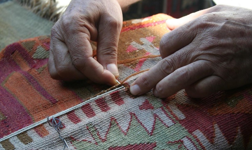 Этот караван-сарай состоит из нескольких частей: бани, где совершали омовение и дезинфекцию перед тем, как зайти в основную часть "дома отдыха", места, где можно было оставить товар на хранение, основная часть и ещё нескольких помещений, назначение которых нам не озвучили. Основная часть двухэтажная - на первом этаже оставляли своих животных, а на втором располагаются комнаты, где люди спали. Сейчас эти помещения используют как лавочки, в которых продают антиквариат и ковры. Кстати, ковры из Кайсери знамениты не только в Каппадокии и по всей Турции, но и за пределами страны. Отчасти благодаря им город получил свою известность. Как выяснилось, наш провожатый делает ковры. Это бизнес, который его семья ведёт более 100 лет! После экскурсии по караван-сараю он нам рассказал все этапы создания ковров начиная со стрижки шерсти. Показал свои фирменные узоры (многие ковроделы выделывают свои фирменные узоры и это является, так сказать, их лейблом) и разрешил запечатлеть процесс создания ковров - надо признаться, что работа кропотливая и монотонная. Но по его словам ему нравится - есть много времени, чтобы думать. На создание одного изделия у него уходит от 1 недели до 3 месяцев.