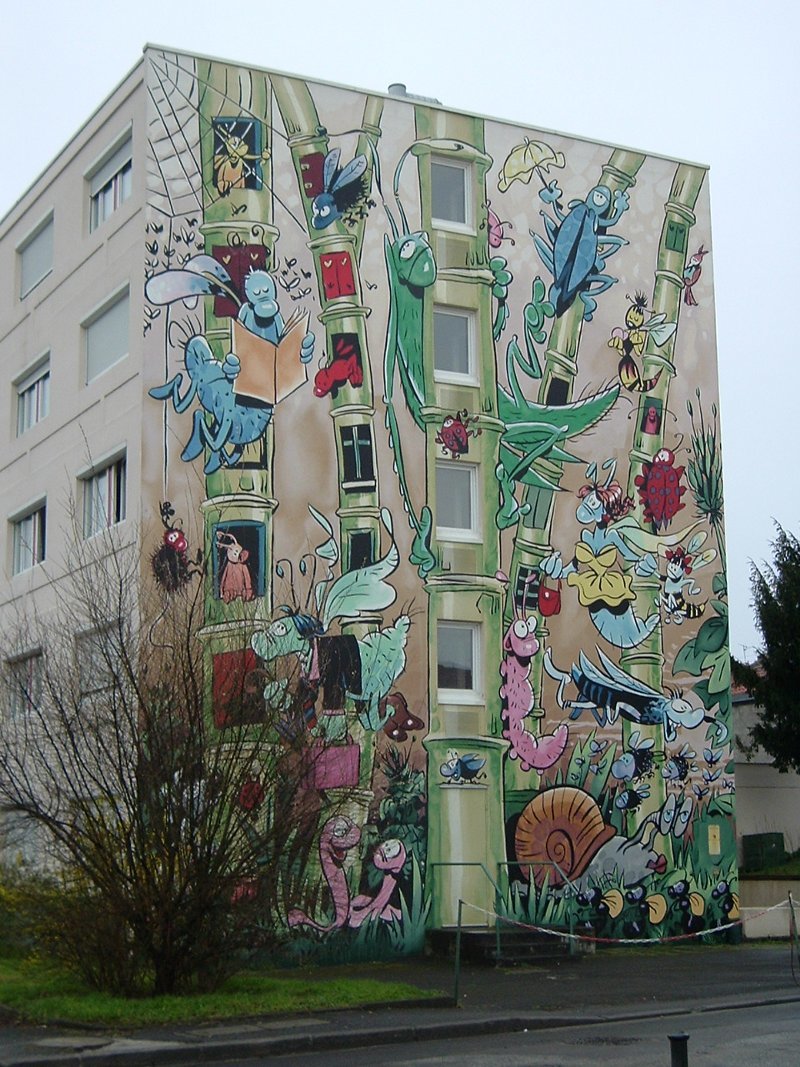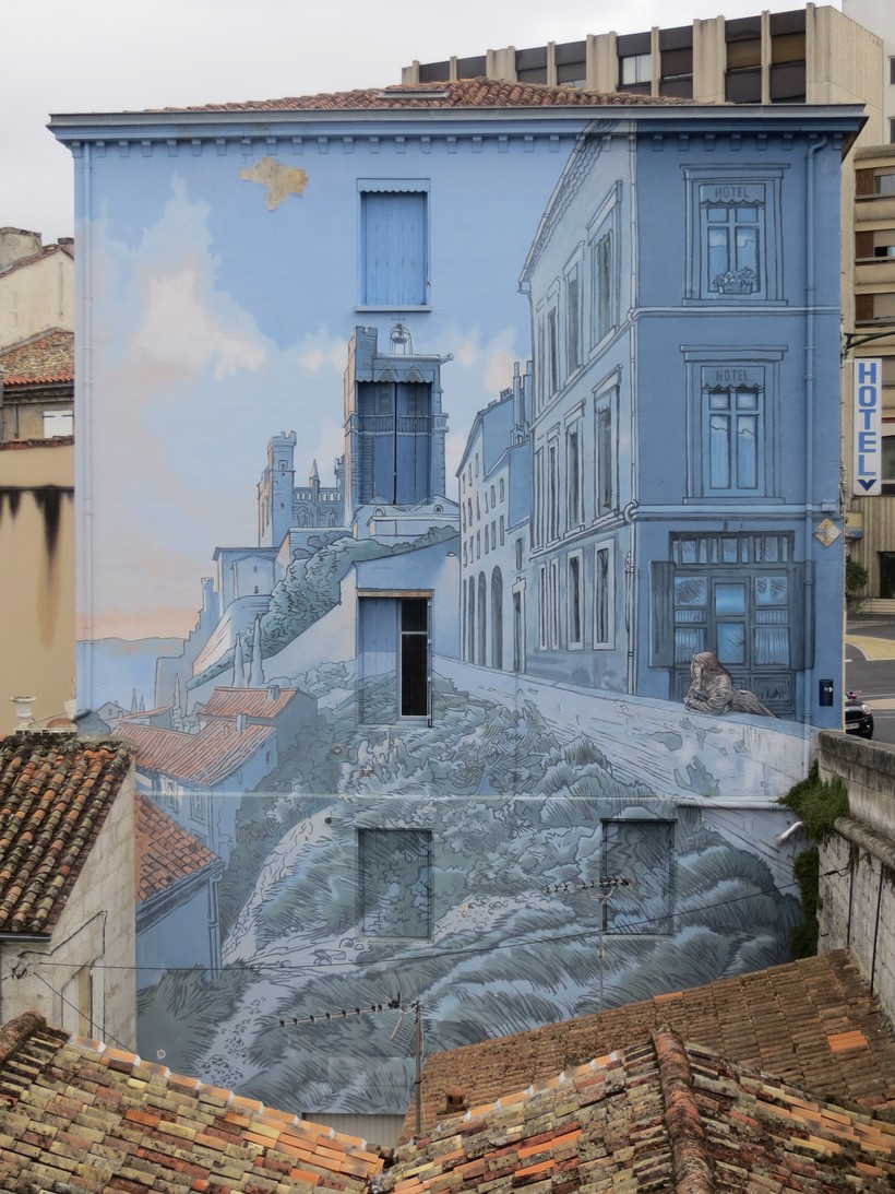 Вообще, конечно, Ангулем показался мне городом контрастов. Старая часть заботливо сохранена, еще одна часть существенно перестраивалась пару веков назад, а еще здесь проходит фестиваль комиксов, довольно знаменитый, и это находит отражение в оформлении некоторых мест в городе. Вот это сочетание комиксов с древними стенками как-то даже заставляло вздрагивать иногда. Идешь-идешь, не предчувствуешь, а на тебя выпрыгивает. Пожалуй, даже в Берлине, изрисованном граффити, я не испытывала этого диссонанса. В любом ведь городе есть реклама, которая обычно не слишком сочетается вон с той исторической башенкой по соседству. Но к рекламе уже мы все привыкли. А комиксовые «зарисовки» иногда были чересчур яркими. Хотя и странным образом не выбивались из собственного городского стиля. Этакий реверанс современности...