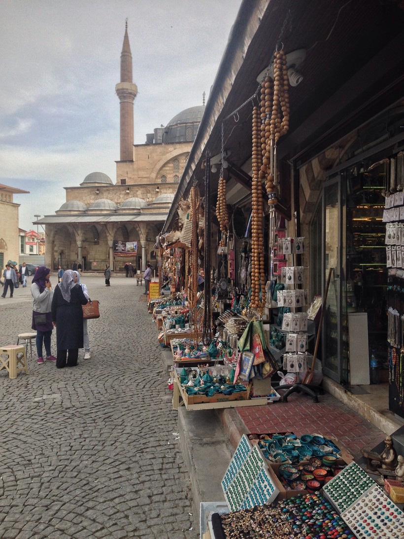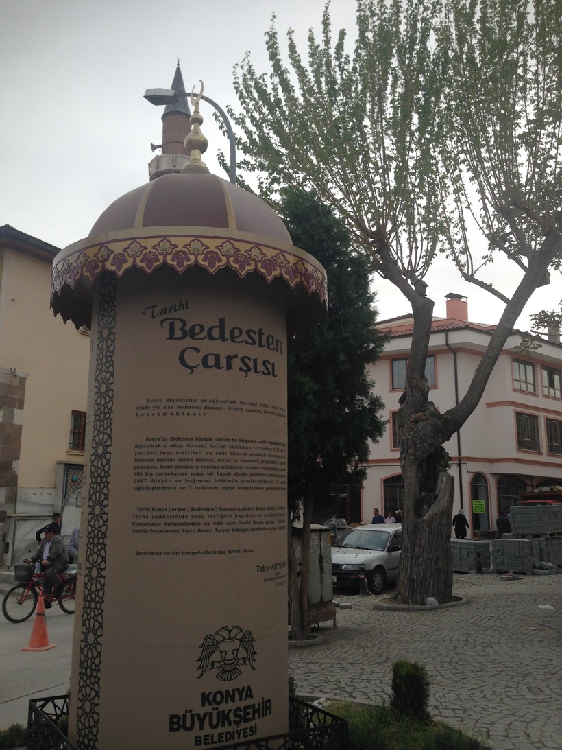 Смысл их религии был в соприкосновении с Абсолютом путем ритуального танца. Наверно, кто-то видел фотографии кружащихся дервишей в широких платьях и конусообразных шапках - это и есть их основная деятельность. По субботам в культурном центре "Мевляна" проходит демонстрация данного танца настоящими современными последователями Мевлеви. Мавзолей Руми расположен на территории монастыря ордена и выделяется на фоне своим ярко зеленым внешним куполом. Рядом располагается мечеть Селимийе, построенная в честь султана Селима, а чтобы дойти до этого места я минула еще одну мечеть - Ипликчи. Прям рядом с Бедестен чарши находится другой храм - Шераффеддин джамии, построенный еще в 1336 году. Во все мечети я советую зайти, так как внутри сохранился изначальный интерьер, пусть и немного отреставрированный.