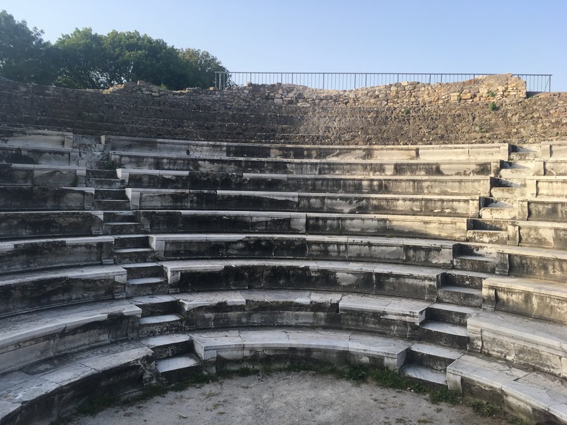 Мы проснулись рано утром и отправились смотреть город. Первым был Романский театр. Мы пришли туда в 7 утра, кроме нас туристов еще не было и картина была очень интересная)) Очень люблю туристические места без туристов. Далее мы пошли смотреть церковь и снова напали на странное празднование пасхи. Как флорист, хочу отметить, что здесь для украшения церкви используют белую и розовую гвоздику и это смотрится очень нежно. Рядом с церковью снова взрывали петарды, внутри церкви хлопали в ладоши и стучали ногами. Мне было очень некомфортно и мы быстро оттуда вышли.
