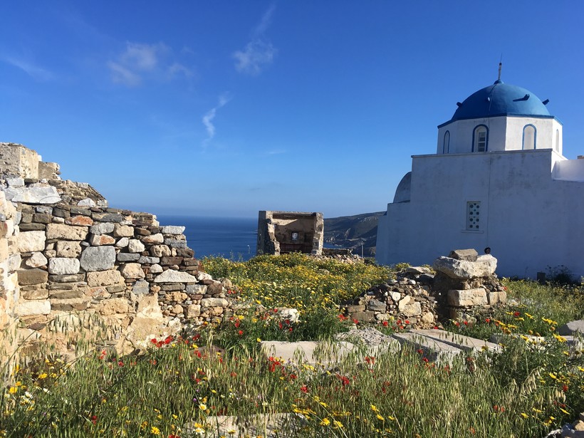 Это маленький остров с прямоугольными белыми домиками, ветряными мельницами и крепостью. Здесь очень много полевых цветов и уличных котиков. Все лучшие ресторанчики сосредоточены на главной туристической улице. И хочу отметить, за все наше путешествие здесь была самая вкусная еда.