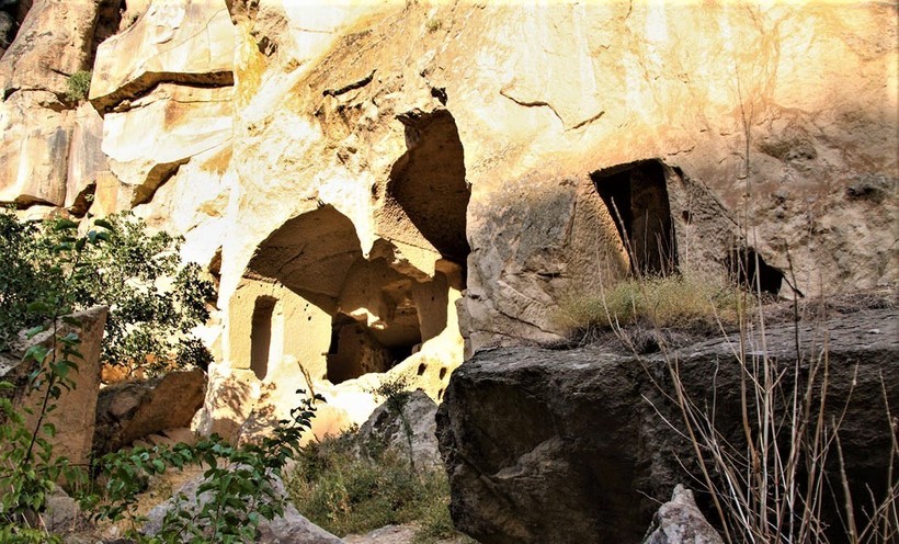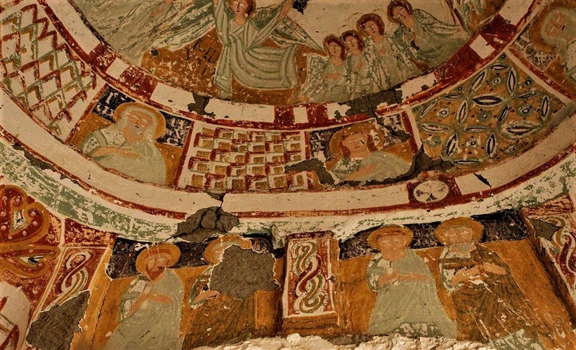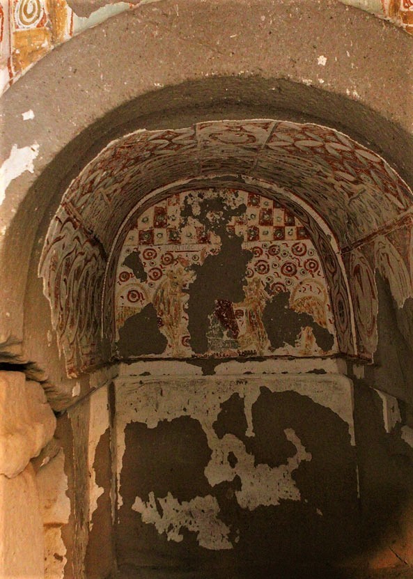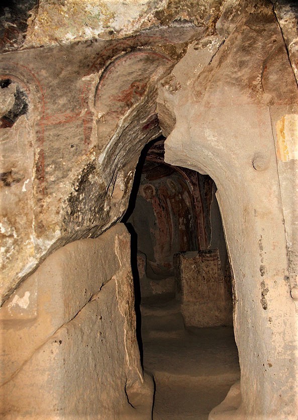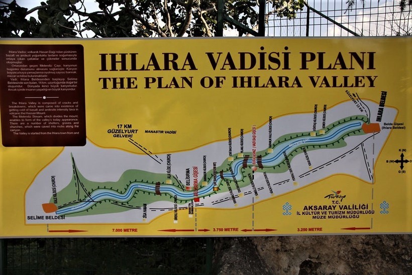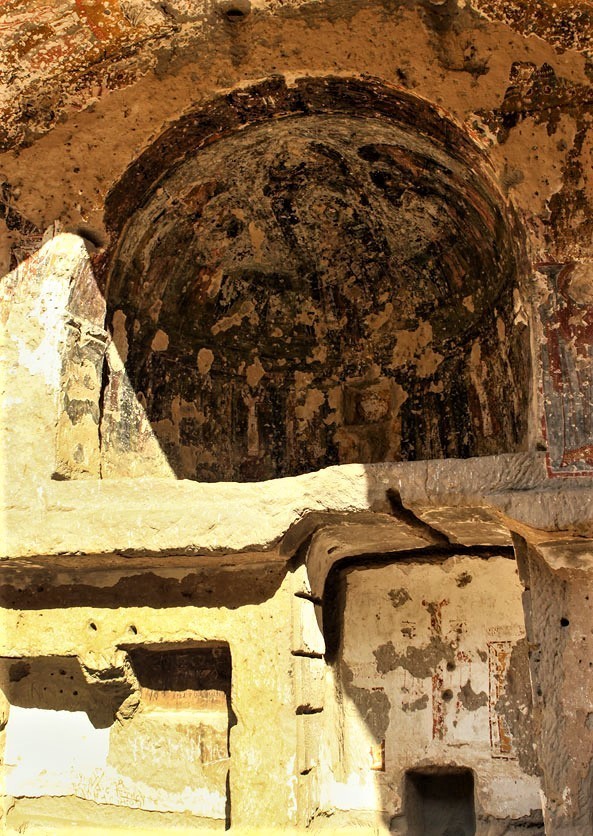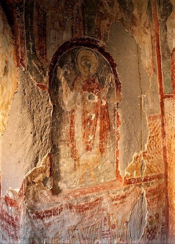 Согласно историческим данным, которые я выяснила, храмы, созданные на территории Ыхлары, выдалбливались в скалах каньона в четвертом веке и всего их более ста, правда для посещения открыты единицы. Причем уникальность данных священных мест заключается в том, что они имеют различный стиль росписи. Мы встретили, например, мотивы, пришедшие из Египта и Армении, хотя армяне когда-то жили в восточной части современной Турции.