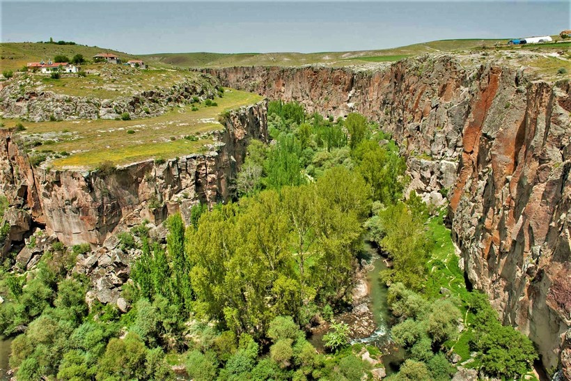 Я объездила весь данный регион и могу сделать вывод, что сам каньон и его виды сильно отличаются от остальных каппадокийских территорий. Все дело в той самой реке, которую я упомянула выше. Когда-то именно она помогла вымыть значительную часть каньона. Плюс, эта же река способствует образованию бурной растительности на дне расщелины.