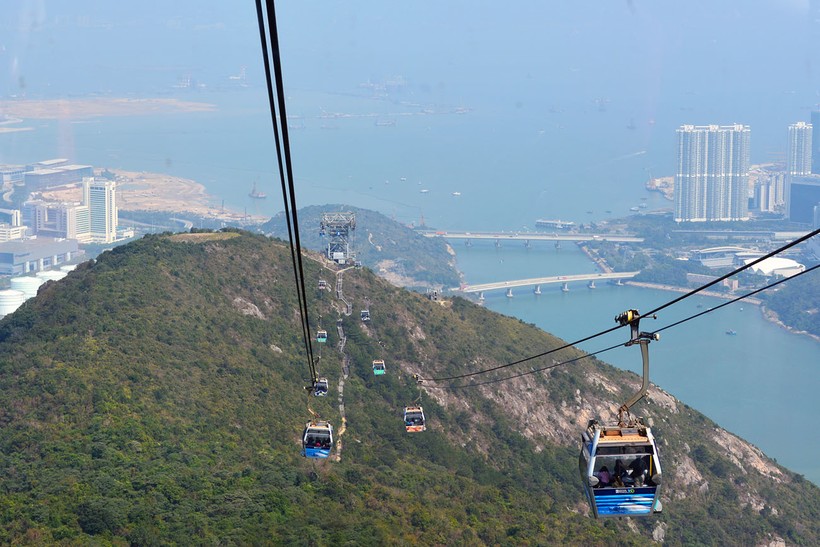 Канатная дорога «Нгонг Пинг 360» произвела на меня мощное впечатление. Сверху открывается потрясающий вид на окрестности. Пролетая над Лантау можно увидеть искусственный остров с аэропортом, урбанистические пейзажи небоскребов, береговую линию с корабликами и яхтами. Но это не главное, главное – это изумительная природа, которой ты любуешься, находясь в кабинке. С высоты становится ясно, что остров действительно очень зеленый. Сверху видны холмы, где-то там внизу протекает речка, узенькой змейкой вьются пешеходные тропы.