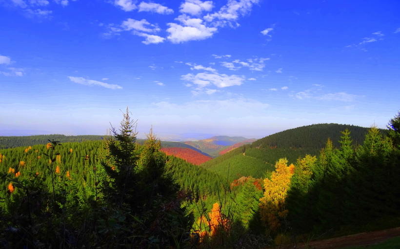 Красивая природа. Очень долгая и теплая осень. Много старинных городов.