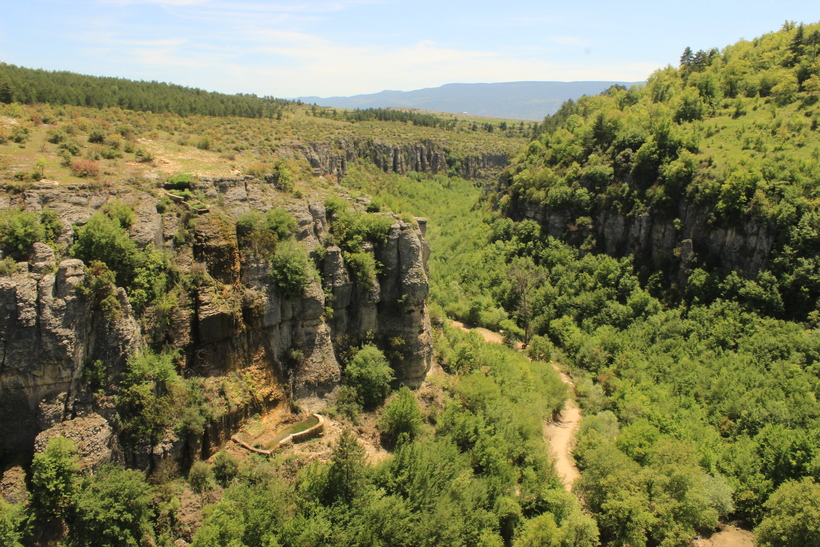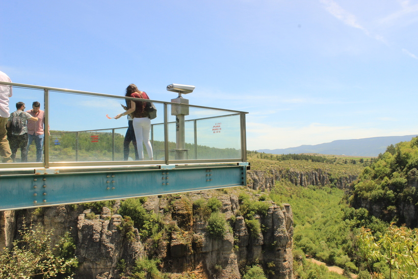 Но и это еще не все. Буквально в нескольких километрах от города располагается каньон с водопадом, прогулочными террасами, разбитыми на стене каньона, древним мостом, по которому можно пройти сверху (в оградке есть лаз), если вы не боитесь высоты и знаменитая на всю Турцию стеклянная обзорная площадка, нависающая над каньонной пропастью. С последней точки открывается умопомрачительный вид.