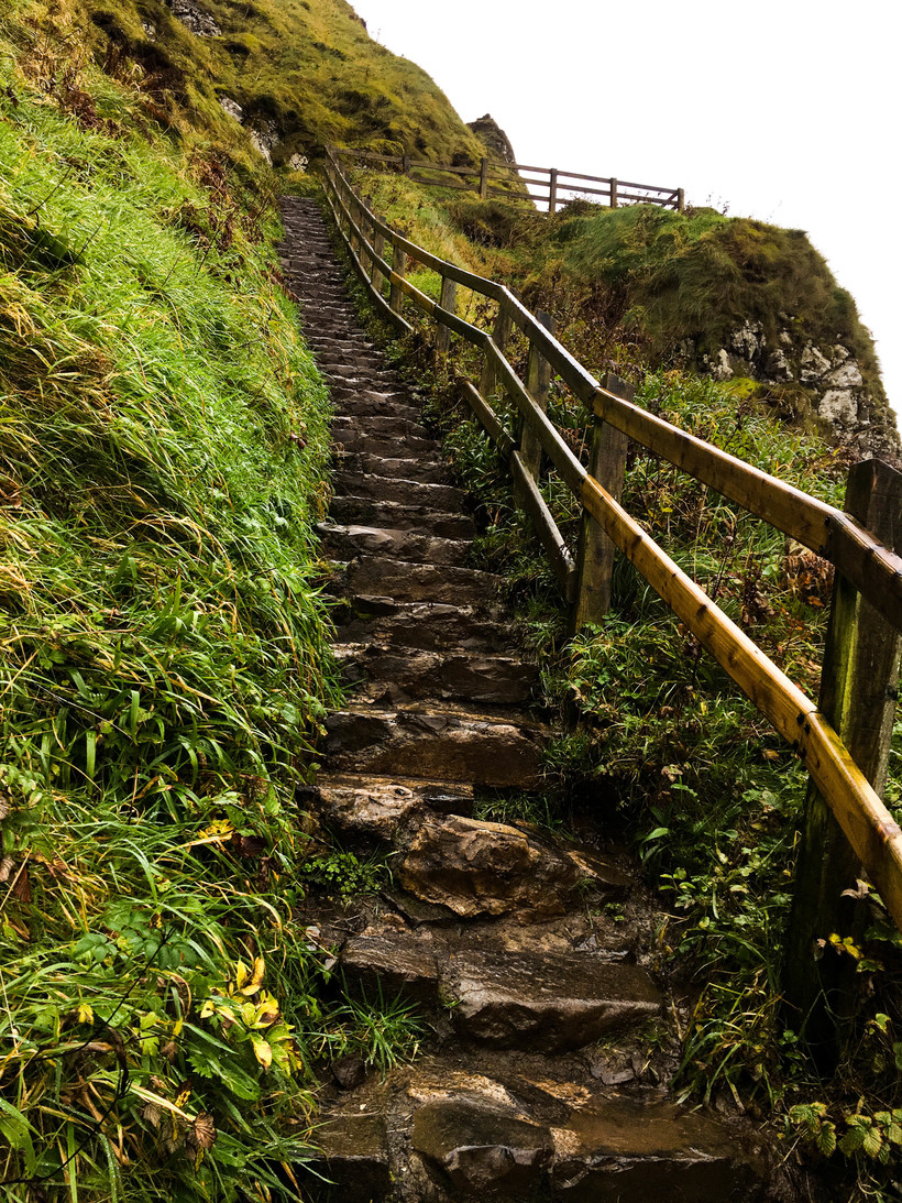 Когда вы вдоволь насладитесь красотами Дороги Гигантов, обязательно пройдите дальше по тропинке к горе и поднимитесь по созданной человеком каменной лестнице на самый верх! Подъем займет около 15 минут, но, поверьте, вид, открывающийся с верхушки горы, просто невероятный!