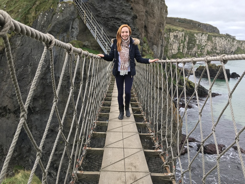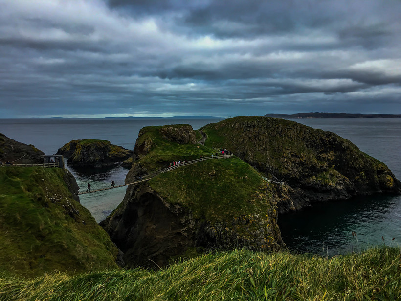 Недалеко от предыдущего места находится веревочный мост, который соединяет Северную Ирландию и небольшой остров в Атлантическом океане. Чтобы пройти по нему вам будет необходимо собрать всю свою храбрость и смелость! Мост находится на очень большой высоте и только самые отважные смогут его преодолеть! Но то чувство, когда проходишь по верёвочному мосту на высоте 30-ти метром над водой, просто непередаваемое! Настолько захватывает дух, что даже самой не вериться в свою отвагу! Поверьте, это стоит того, чтобы пройтись по нему. Вид, который откроется вам во время прохода, запомнится на всю жизнь!