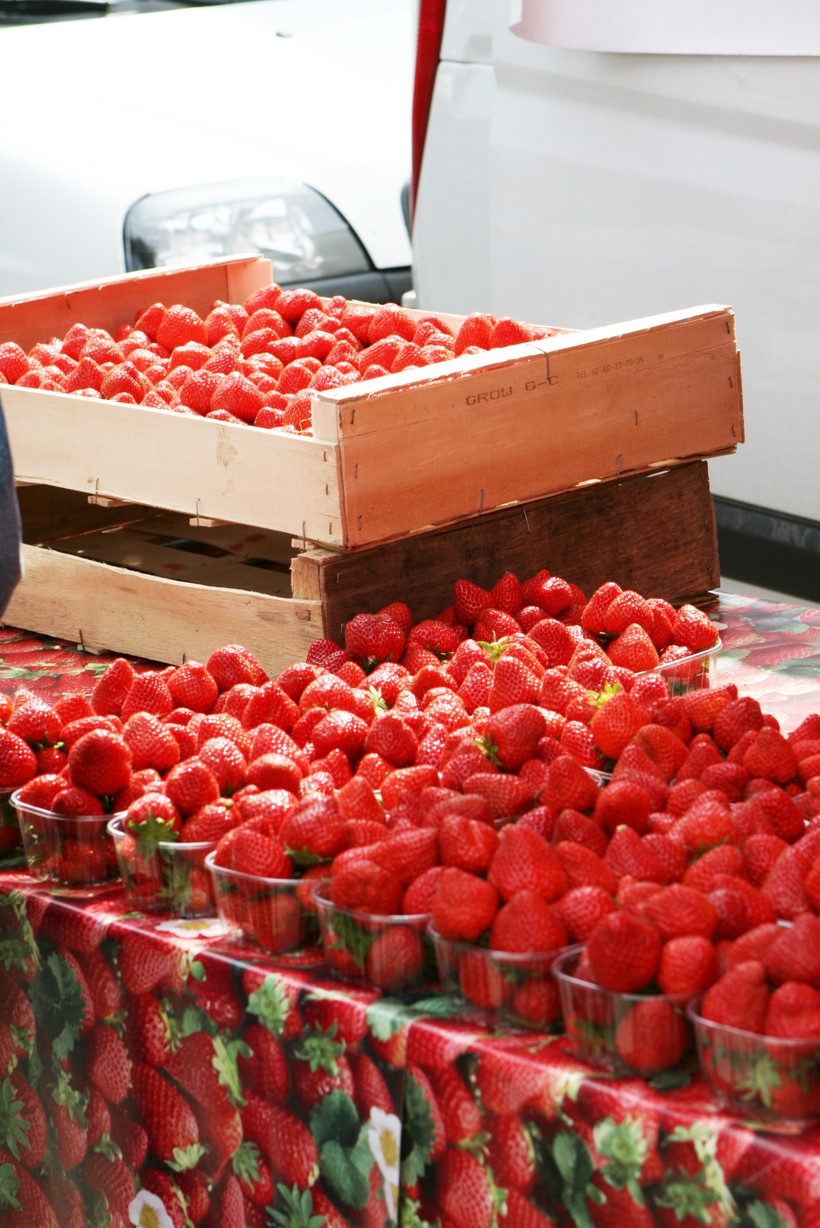 Еще летом на рынках продаются прекрасные овощи, фрукты и – клубника, очень много клубники! Она в Шербуре сладкая и вкусная, смело можно брать.
