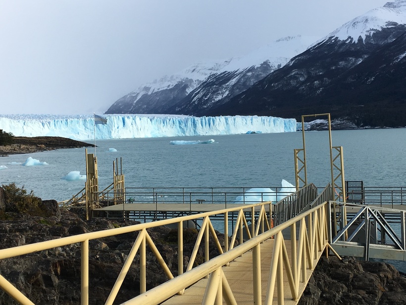 Сразу выйдя с самолета почувствовался морозный воздух, а оглянувшись я увидела горы, перед которыми находилось озеро с нереальным цветом воды...это было озеро Аргентино.