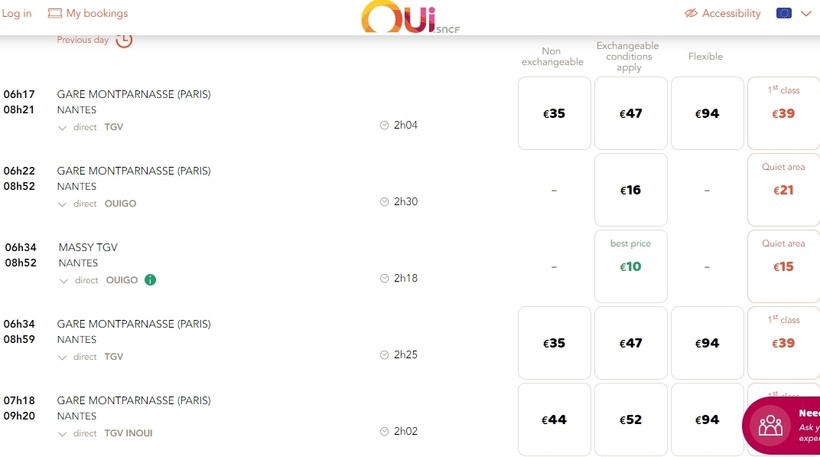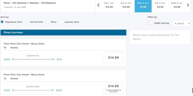 В Нант я ехала на поезде, получилось и не очень дорого, и быстро.
