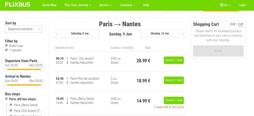 - на сайтах перевозчиков — Flixbus и Ouibus.