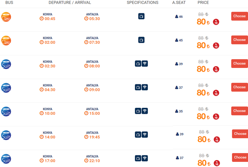 Если ваша поездка в Анталью получится спонтанной, купить билет можно в кассах автовокзала Коньи. Но я рекомендую оформлять билеты заранее на сайтах перевозчиков Metro и Kâmil Koç.