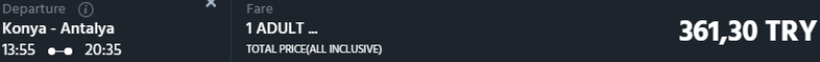 Ниже приведена информация о том, сколько часов вам потребуется, чтобы добраться от Коньи до Анталии, а также приведена примерная стоимость проезда (средняя цена билета) на том или ином виде транспорта.