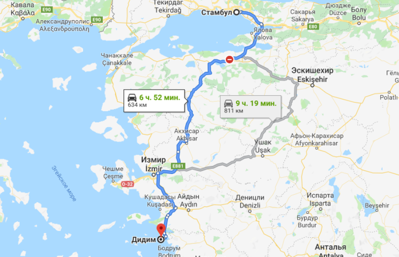 Стамбул и Дидим разделяют 630 км, которые на машине по турецким дорогам можно проехать примерно за 7 часов.
