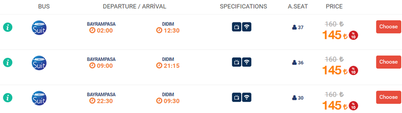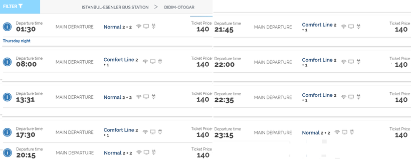 Автобусы компании Metro выезжают из Стамбула в Дидим трижды в сутки — в 02:00, 09:00 и 22:30.
