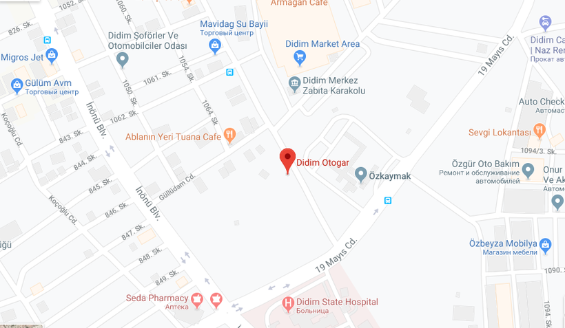 В пути из Стамбула в Дидим автобусы находятся в среднем 10,5–12 часов (в зависимости от количества остановок), на курорт они прибывают на автовокзал Didim Otogar на Cumhuriyet Mahallesi, это в центре города.