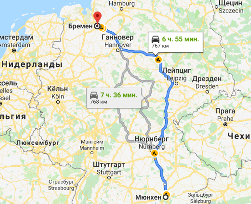 Мюнхен и Бремен разделяет 750 км, и преодолеть такое расстояние на машине получится за 7 часов. Благо, дороги в Германии просто отличные!