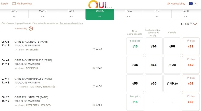 В день доступно около десятка рейсов. График есть на сайте французского железнодорожного оператора.