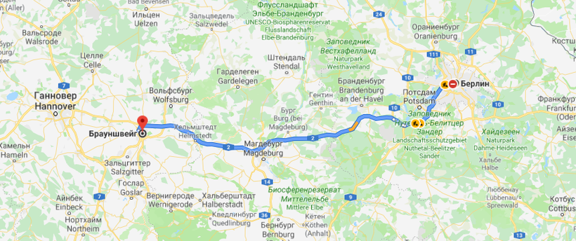 Расстояние от Берлина до Брауншвейга