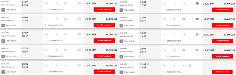 Билет на поезд по маршруту Берлин — Брауншвейг обойдется от 20 евро или 1460 рублей, но это если приобретать заранее.
