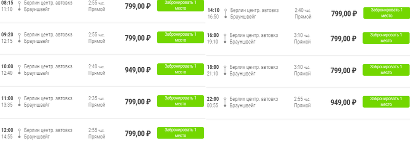Отправляются прямые рейсы в Брауншвейг от центрального автовокзала Берлина (Masurenallee 4-6) ежедневно в: