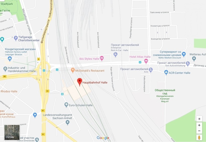 По автобану А10 ехала до перекрестка Potsdam, а на перекрестке выехала на трассу А9. Трасса А9 идет почти до самого Галле, я проехала по ней 100 км, а на развязке Halle, свернула на автобан А100. Через 10 минут я уже ехала по Paracelsusstraße в Галле.