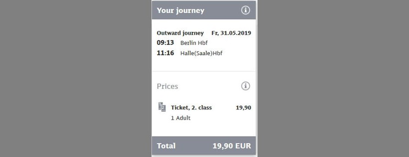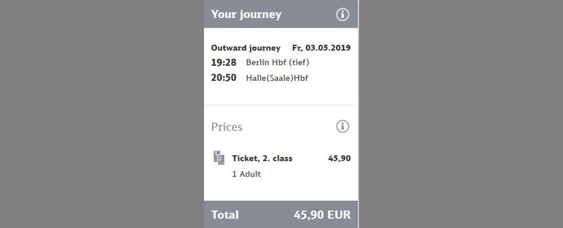 Стоимость поездки на поезде в Германии зависит от времени покупки билетов. Если вы покупаете билет в последний момент — переплачиваете (точнее платите полную стоимость билета), покупаете за 3–4 недели до поездки — экономите.