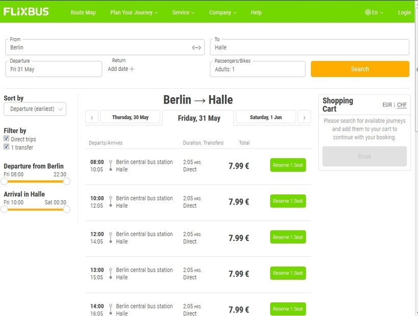 Для покупки билетов можно зайти на сайт перевозчика Flixbus.
