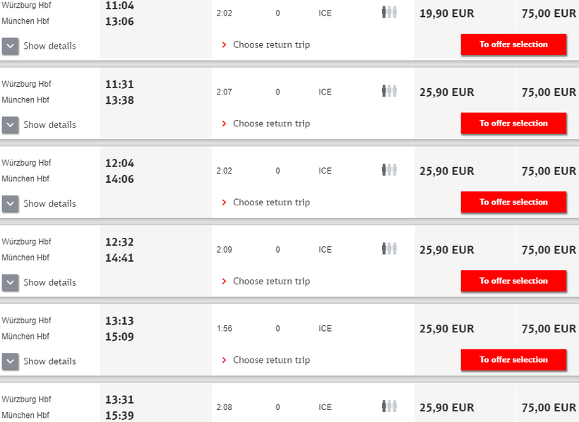 Есть два основных плюса в выборе поезда для поездки из Вюрцбурга в Мюнхен — время в пути и количество ежедневных рейсов.