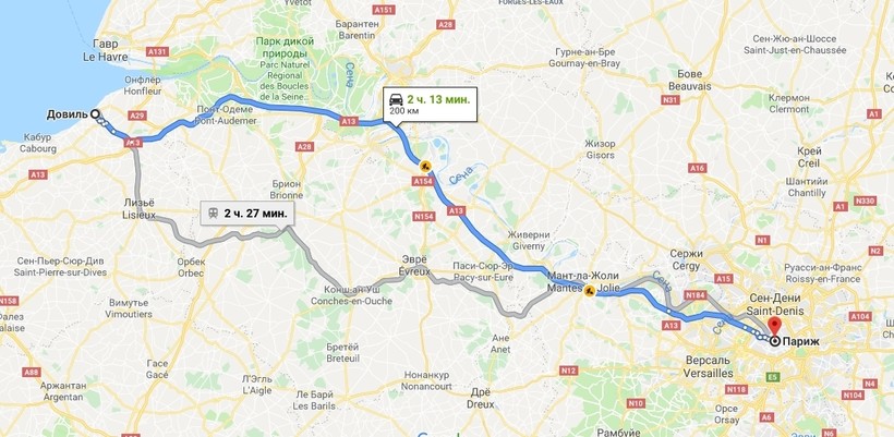 Довиль, Нижняя Нормандия — Париж — маршрут на карте