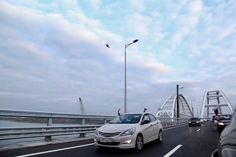 Хочу отдельно рассказать о мосте на полуостров. Покрытие идеальное, по две полосы в каждую из сторон. На въезде и выезде стоит пост ДПС, а на мосту много камер установлено. Останавливаться на всем протяжении моста строго запрещено. Ехать можно не больше 90 км/час.