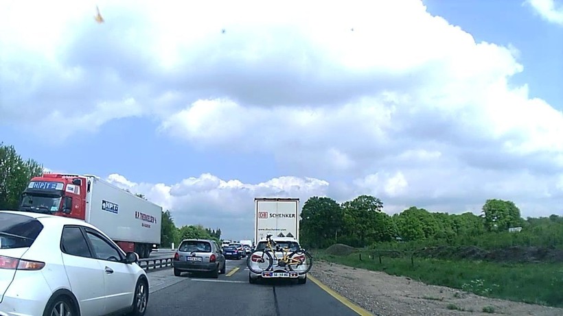 Пробки, как на этом моменте с бортовой камеры, бывают редко. Обычно можно держать скорость не менее 80–90 км/ч.